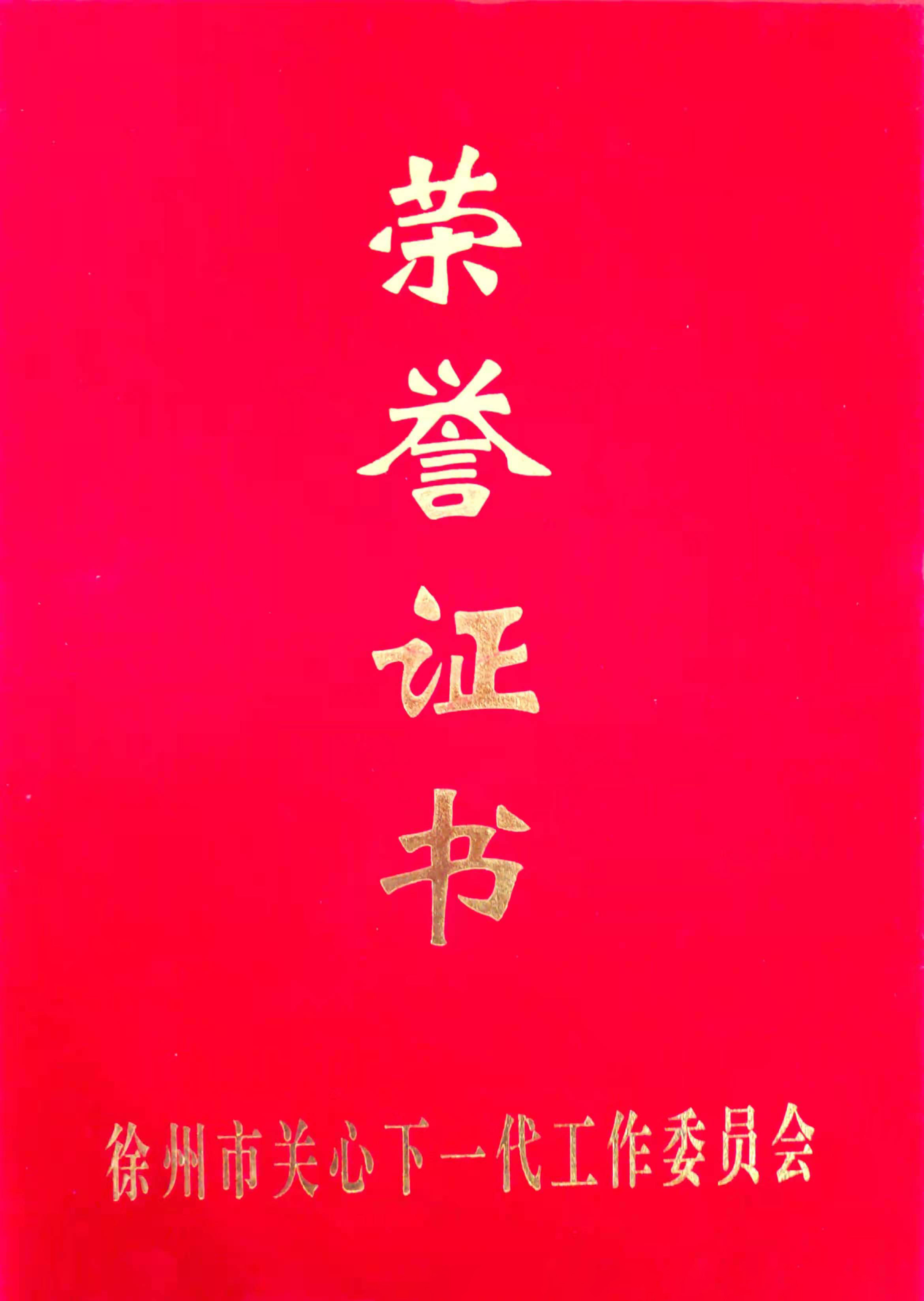 關(guān)心下一代 榮譽證書