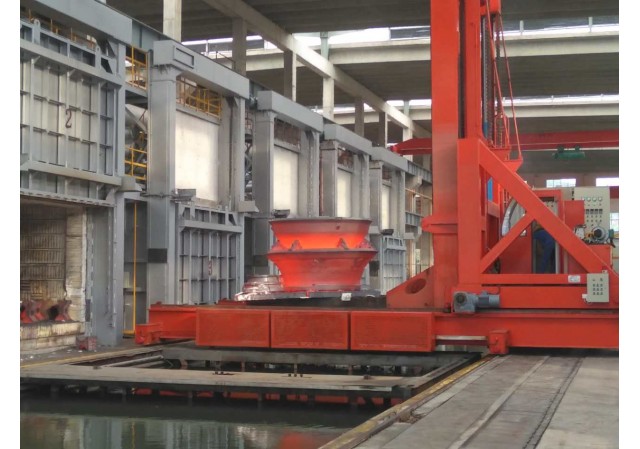 生產(chǎn)線(xiàn)配有一臺(tái)快速下水(油)淬火操作車(chē),該操作車(chē)可上下、左右、前后六個(gè)方向移動(dòng)。工件熱處理完成后,操作車(chē)迅速進(jìn)入爐內(nèi)將工件從爐膛內(nèi)叉出,并快速落入水池或淬火液池內(nèi),整個(gè)轉(zhuǎn)移過(guò)程可控制在30秒內(nèi)完成。